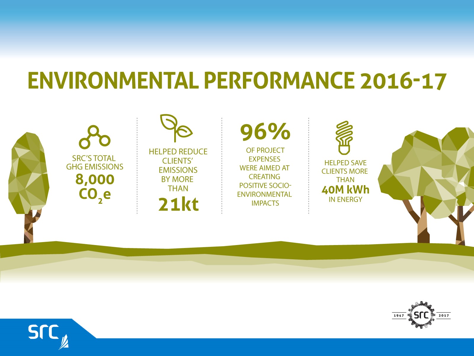 For the eleven-year period for which data is available (2006-07 through 2016-17), SRC conducted over $300 million worth of R&D projects, contributing socio-environmental impacts that include, among other things: